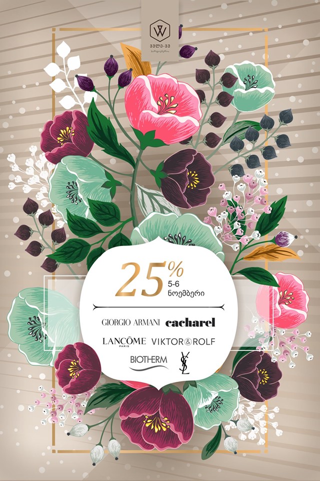 გვეწვიეთ ფილიალებში, აღმოაჩინეთ ახალი, საუცხოო არომატები, დეკორატიული კოსმეტიკა და სახის მოვლის საშუალებები -25%_იანი ფასდაკლებით.